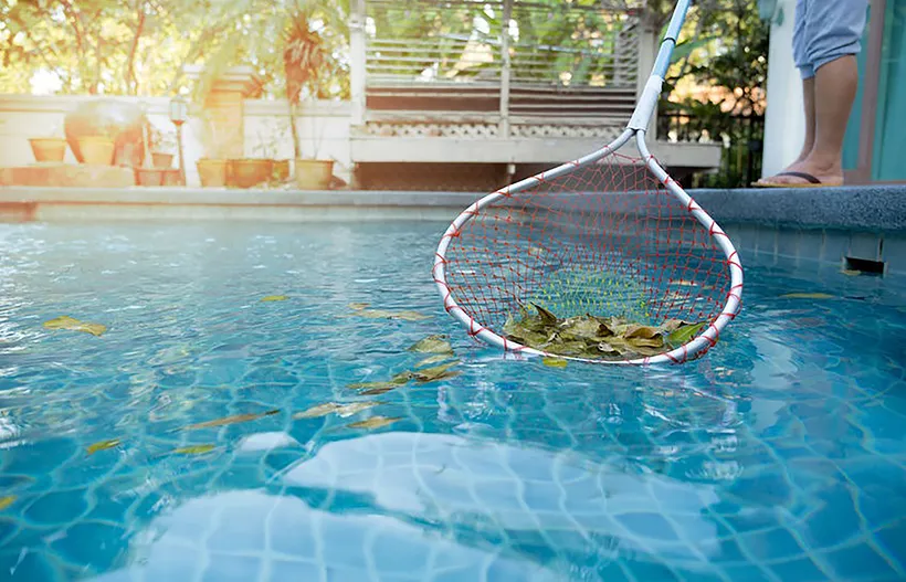 To prepare your pool for winter, lower the water level, drain the equipment, and securely cover the pool. Failing to winterize can lead to cracked tiles. Additionally, use chlorine-free pool shock or a stain and scale treatment before closing the pool.